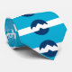 A necktie with a design with the flag of Ogden, Utah. A blue and white flag with mountain peaks in the center