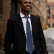 Flor geométrica sutil do padrão de vida amarrada no pescoço em azul escuro.