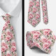 Um colar de rosas cor-de-água rosa apresenta um design delicado e macio, onde os rosas são pintados em tons sutis de rosa, que vão de uma pincelada pálida a uma matiz rosa mais profunda. As flores parecem ligeiramente misturadas com os traçados fluidos da aquarela, dando-lhes uma aparência macia e etérea. A gravata tem um gradiente suave de cores, com salpicos de folhagem verde ou clara ao redor das rosas para melhorar a beleza natural das flores. O aspecto geral seria elegante, romântico e sofisticado — ideal para ocasiões formais ou um toque refinado, mas sutil, para uma roupa profissional.