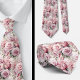 Um colar de rosas cor-de-água rosa apresenta um design delicado e macio, onde os rosas são pintados em tons sutis de rosa, que vão de uma pincelada pálida a uma matiz rosa mais profunda. As flores parecem ligeiramente misturadas com os traçados fluidos da aquarela, dando-lhes uma aparência macia e etérea. A gravata tem um gradiente suave de cores, com salpicos de folhagem verde ou clara ao redor das rosas para melhorar a beleza natural das flores. O aspecto geral seria elegante, romântico e sofisticado — ideal para ocasiões formais ou um toque refinado, mas sutil, para uma roupa profissional.