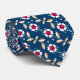 Gravata Flores retro brancas sobre fundo azul escuro