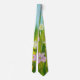 Flores selvagens na grama. Colores de pastel em fundo azul. Verde iridescente faz esta gravata se destacar. Um presente adorável para o homem na sua vida.
