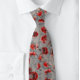 Flores Vermelhos Pópidas Masculinas em Botânica de Cinza | Gravata projetada com papoila vermelha, em um pano de fundo da cinza