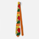 Essa gravata tem um design de folhas se repetindo para fazer uma pilha de folhas em tons de amarelo, vermelho, laranja e verde.