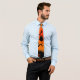 Legal, divertido design de gravata de Halloween. Uma coruja numa árvore assustadora e Jack o Lanterna.