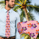 Flores de Hibiscus empadas para casamentos temáticos tropicais. Padrão floral ilustrado, em laranja, rosa e roxo sobre fundo cor-de-rosa. Uma escolha perfeita para o noivo e/ou padrinho de casamento.