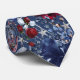 Uma elegante aquarela pintada de vermelho, branco e azul no dia 4 de julho, gravata no pescoço Independência apresentando um marinho azul e vermelho profundo, papoilas e peônias em um jardim torto por estrelas com estrelas cintilantes.