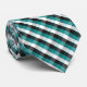 Uma gravata retro e à moda do teste padrão da verificação da xadrez na cerceta, no branco e no preto.