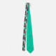 Esta gravata tem uma design moderna do século médio, feita de cinco linhas pretas e dois retângulos turquesas repetidos na design.