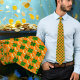 A sorte da gravata irlandesa com padrão para a Rua. Dia de Patrick comemorando. Trevos verdes, de quatro folhas e padrões de ferraduras douradas cobrir um fundo laranja nesta gravata irlandesa unisex. Este design de sorte é perfeito para comemorar feriados no escritório e eventos especiais que acontecem em março.