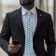 Pato de madeira na água, com um lenço de água branco ao lado do pato, num pano de fundo de azul