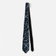 A gravata masculina é mostrada a preto com uma impressão de fita azul.