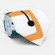 Esta gravata tem um design de retângulos que são esticados em uma extremidade em tons ranhosos de laranja, verde, lacre, roxo, azul, rosa e amarelo com linhas atômicas que os cruzam.