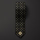 Esta Gravata de Monograma de Tatuagem Tribal apresenta um padrão de ícones geométricos estilizados em ouro criando uma declaração em moda. Personalizar com um monograma. Certifique-se de verificar nossas meias correspondentes adornadas com o mesmo design.