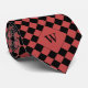Esta gravata apresenta quadrados vermelhos brilhantes sobre fundo negro, criando um design vibrante, mas sofisticado, que apelará a tipos de negócios com um senso moderno de moda. Inclui um monograma, para adicionar um toque personalizado de sofisticação. Verifique as meias correspondentes com o mesmo design.