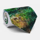 Gravatas com uma bela fotografia de uma cena agradável e tranquila da natureza. Floresta verde vibrante na frente e montanhas azuis sombrias nas costas. Com um céu branco nublado e sonhador. Mistura e mágica.