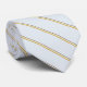 Uma gravata muito na moda com um elegante padrão de listras pequenas em amarelo ocre, verde pastel e marrom quente sobre um fundo azul pastel pálido. Concebido por Iolantesdesigns :-)!