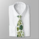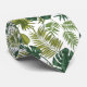 Neck tie with a tropical leaf pattern, featuring vibrant green palm and monstera leaves on a white background. Both sides display the same design.