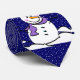 Gravatas e presentes bonitos de inverno para homens com ilustração de um boneco de neve vestindo um cachecol roxo lá fora onde está nevando e com textos personalizáveis lendo: Deixe-o nevar. roupa de feriado excelente e presentes de férias para caras, homens, irmãos, tios, namorados, pais, primos, qualquer um que ame homens de neve! Da coleção de Natal de Designs de Lesruba.
