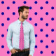 Bolinhas! Um dos padrões roupa clássicos que parece excelente no gravatas. Este gravata de bolinhas retrorreflectora apresenta pequenos pontos azuis de marinho em rosa quente.