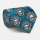 Uma imagem do crânio é emoldurada com um design ornamentado e colocada num padrão que cobrir a superfície desta gravata única do pescoço. O padrão é colocado sobre um fundo azul real gradiente.