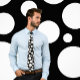 Bolinhas colocadas aleatoriamente, grandes e pequenas, compõem esta gritante branca na gravata preta.