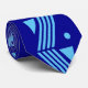 Uma gravata com um padrão de deco artístico, com um fundo de azul escuro (00008b). Alma Wad projetou um padrão único para uma gravata que apresenta ziguezagues, triângulos e pontos em cor azul-céu.