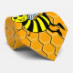 Uma gravata divertida com um padrão amarelo de mel e uma abelha sorridente.