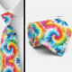 Aumente a cor e deixe seu estilo fazer uma declaração com essa gravata tie-dye psicodélica. Com um padrão vibrante focado no pescoço que irradia do centro em um redemoinho de azuis elétricos, rosas ardentes, amarelos solares e roxos profundos, esse design traz energia retrô para um guarda-roupa moderno.