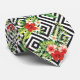 O hibisco legal e as folhas do padrão tropical, com fundo geométrico moderno preto e branco.