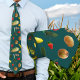 Gravata de padrão vegetal. Tinta azul escura no pescoço com imagens coloridas de vegetais, como milho no saco, alhos-porcos, pimentões, cebolas, morangos, cogumelos, batatas, squash e alho. Perfeito para vestir fazendeiro, produtor, jardineiro e/ou vegetariano.
