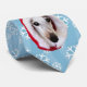 Greyhound italiano em papais noeis com fundo azul claro e floco de neve branco.