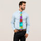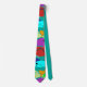 Esta gravata tem uma design de uma escola de peixes nadando no oceano em verde, azul, laranja, amarelo, vermelho, rosa e azul-verde.