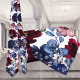 Uma gravata de marinho ruiva, vermelha, branca e azul, pintada a cores vivas, apresentando papoilas azuis marinho e burgundy e peonias contra fundo branco puro.
