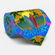 Por do sol bonito da praia atrás das prancha e das palmeiras, quadro com as flores do bambu e do hibiscus. Fundo do azul de oceano com as tartarugas de mar de Honu e máscaras havaianas cor-de-rosa de Tiki.