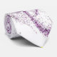 Laço branco com grandes redemoinhos roxos e de prata e pontos