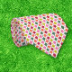 Adicione alguma alegria à sua roupa de Natal com esta gravata padronizada que apresenta um padrão geométrico simples numa paleta colorida de vermelho, verde limão, laranja, rosa e verde na parte de trás branca. O verso tem um padrão de riscas diagonais.