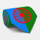 Esta design apresenta a bandeira romani, que é a bandeira internacional das pessoas romanichéis. A bandeira é constituída por um fundo azul e verde, representando os céus e a terra, respectivamente; contém também uma chacra vermelha de 16 raios, ou uma cartela, no centro, que representa a tradição itinerante das pessoas romanichéis e é também uma homenagem à bandeira da Índia. A bandeira foi aprovada pelos representantes de várias comunidades romanichéis no primeiro Congresso Mundial Romani (WRC), realizado em Orpington em 1971.
