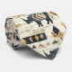 Bold tribal rhino pattern necktie featuring distressed black rhinoceros silhouettes paired with geometric mudcloth-style motifs in warm tan and charcoal on a textured beige background. A rugged, earthy design ideal for safari enthusiasts, boho decor lovers, and wildlife-inspired style fans.