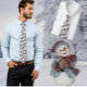 Foto de um Enfeites de natal divertido - um boneco de neve segurando uma casinha de pássaros - enfeita essa gravata que você pode vestir durante todo o inverno