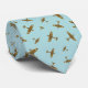 Stylish tie printed with a pattern of Spitfire war planes, on a pastel blue background. Great gift idea for war veterans, military and pilots.