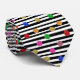 This unique necktie features a vibrant design of stripes interwoven with eye-catching colorful circles. It's a stylish accessory that adds a pop of personality to any outfit, perfect for making a statement at any occasion.