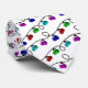 Gravata de pescoço com luzes de Natal brilhantes e multicoloridas, em forma de pedras a curvar num fundo branco. Faz um presente de feriado excelente para curadores e fãs de curling.