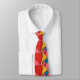 Este design apresenta 3 corações em amarelo, azul e vermelho. Um contorno preto está nos corações. Várias flores estão cercando os corações. Um fundo vermelho claro foi adicionado. Esta gravata pode ser vestida por um homem ou uma mulher.
