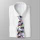 A gravata do pescoço deste homem tem um padrão triangular no estilo Memphis nas cores clássicas do pastel. Este design de estilo da Flórida tem muitos padrões em forma geométrica dentro dos triângulos junto com as folhas de palma de Miami espalhadas pelo padrão. Você pode fazer o padrão na gravata do pescoço maior ou menor. Esta gravata do pescoço faz um presente na moda para qualquer um que ama o estilo Memphis dos anos 80.