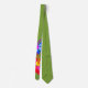 Gravata com grande hibisco com duas flores. Uma flor azul e uma rosa sobre um fundo verde tropical.