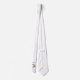 Uma gravata branca com a ilustração de uma vaca branca e negra na Suíça, vestindo um sino de vaca suíço em volta do pescoço e mastigando uma flor selvagem amarela. Há também as palavras "Eu amo vacas" escrevendo=10 em letras negras. © ArianeC Ilustrações