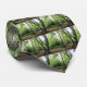 Esta bonito gravata apresenta uma fotografia tirada na floresta britânica caducada. No primeiro plano está uma árvore grande com muitas ramificações torcidas. O sol brilha através da massa de ramos criando um maravilhoso contraste entre a escuridão da grande árvore e a luz do sol e as árvores verdes no fundo.