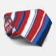 NOVO! Os cursos pintados mão aleatórios da escova compo esta gravata listrada painterly original. Um design de matéria têxtil de quatro cores. Uma terra vermelha com os azuis brancos, reais e de marinho.
