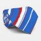 NOVA! Traços de pincel pintados à mão aleatórios compõem essa original gravata listrada pintada. Um design têxtil de três cores. Um fundo azul oceano com vermelho e branco.